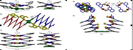 我校徐虹教授课题组成员迟波副教授在非生物分子的高级结构仿生及编码组装方面取得重要进展。课题组在前期发现一类芳香酰胺寡聚物可通过分子内氢键诱导折叠形成具有纳米空腔的单螺旋、多螺旋超分子聚集体结构,可实现分子的识别、编码及信号传递。他们进一步借助于计算机以及理论模拟的辅助以构筑高级结构仿生,首先设计合成了含有羟基结构的10聚体YQXQQYQXQQ螺旋结构,然后巧妙地把两个10聚体通过具有自由旋转键的连接基团T组成芳香酰胺寡聚物QXQQYQXQQ-T-QQXQYQQXQ,在溶剂中该分子以氢键作用力实现了从线型到“U”型折叠的翻转。而对晶体结构的解析表明此类分子在溶剂中可组装成多种高级结构,如化合物4a可在溶剂及浓度的影响下实现从双螺旋与三螺旋之间的转换3x(4a)2?2x(4a)3,链与链间的氢键键角从180°变成120°,并且这种两种组装方式可以共存,其分子信息传递则由螺旋分子的堆积堆叠方式得以表达。
