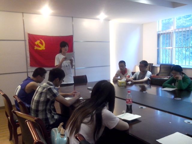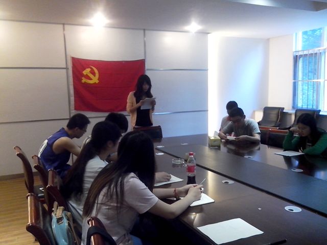 刚结束了一门专业课的考试,支部的同志们没有因此而疲乏,4:10分准时到达了会议室,会议准时开始。此次会议首先由顾晨同志宣读转正申请书,她将自己预备期内各方面的表现进行了汇报,支部宣传委员吴晨琛同志宣读了群众座谈会内容,支部成员对顾晨同志能否转正进行了充分讨论。随后,顾晨同志就自己的缺点与不足说明了改正的方法与决心。接下来李成昆、张学林、李森、徐炎炎、刘李等五位同志也分别对自己预备期内的表现向党组织作了汇报,大家的群众座谈会也都反映出了各自的不足。如女生与男生交流较少,缺少与班级同学交流,平时较沉闷等。几位同志也分别就自己的缺点与不足说明了解决方法与决心。