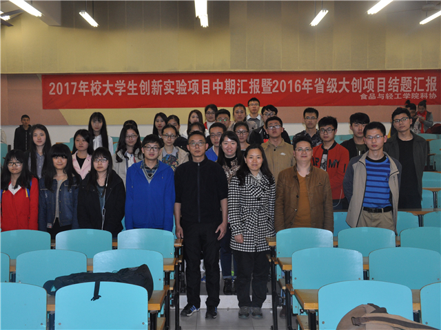 美高梅mgm1888公司官网2017年校大学生创新实验项目中期汇报暨2016年省级大创项目结题汇报于4月7日下午3:30在厚学楼302室举行。出席本次汇报的领导与嘉宾有美高梅mgm1888公司官网副院长姚忠老师、轻化系主任王国伟老师、食品系主任陆利霞老师、分团委书记权良媛老师。参加汇报的有四个省级汇报小组,十九个校级汇报小组,美高梅mgm1888公司官网各级学生作为观众参加了活动。