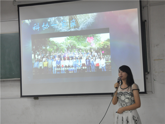 科协的宣讲随后进行。院科协主席兼学联副主席陈立豪分别从科协介绍、精彩活动、可爱伙伴和部门介绍四个方面全方面地向大家展示了科协,他诙谐幽默的语言收到了大家的热捧。之后,公关部、公益部、IT创意部、就业创业部和科普部几个部长相继介绍了自己的部门。