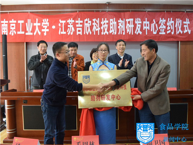 接下来是南京工业大学·江苏吉欣科技助剂研发中心签约仪式。到场嘉宾有美高梅mgm1888公司官网院长徐虹教授、院党委副书记熊强教授、副院长姚忠教授、江苏吉欣生物技术有限公司总经理董吉林先生。美高梅mgm1888公司官网院长徐虹教授为签约仪式致辞,表达了对盱眙县科技局以及江苏吉欣集团的热烈欢迎。最后,吉欣生物科技有限公司总经理董吉林先生以一番真诚的讲话赢得了阵阵掌声。在掌声中完成了签约仪式,全体签约人员合影,至此,签约仪式圆满落幕。