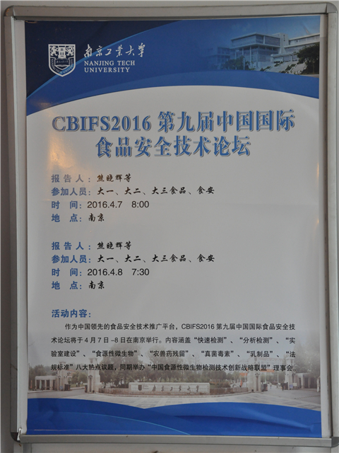 作为中国领先的食品安全技术推广平台,CBIFS2016第九届中国国际食品安全技术论坛将于4月7日-8日在南京举行。内容涵盖“快速检测”、“分析检测”、“实验室建设”、“食源性微生物”、“农兽药残留”、“真菌毒素”、“乳制品”、“法规标准”八大热点议题,同期举办“中国食源性微生物检测技术创新战略联盟”理事会。