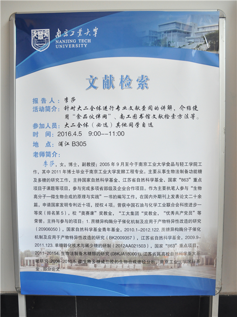 针对大二全体进行专业文献查阅的讲解,介绍使用“食品伙伴网”、南工图书馆文献检索方法等