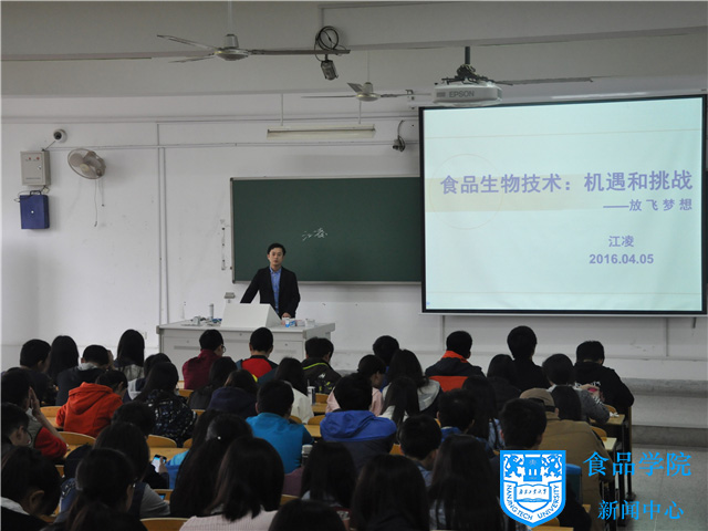 4月5日上午9:00,美高梅mgm1888公司官网全体大一学生齐聚浦B301室,江凌老师在这里为他们带来了一场精彩的讲座——“食品与生物技术——机遇和挑战”。