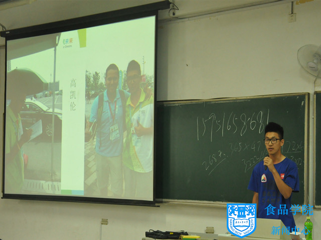 他们五位作为大三的学长学姐,有一个共同点就是做过志愿者。这次交流会,他们主要分享了自己在志愿者方面的经历。交流会开始之前,新生观看了两段关于志愿者的视频,对青奥的志愿者工作也有了初步了解。见面会上,倪赟这样描述自己的第一次志愿者工作:“那是我去希望小学当志愿者,在地铁站为他们募捐,很累很辛苦,但是看见一群天真的小学生的笑容,这一切都值了。”这番话朴实富有真情,在座的同学们无不为之动容。