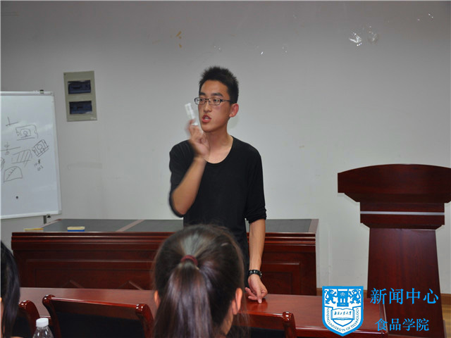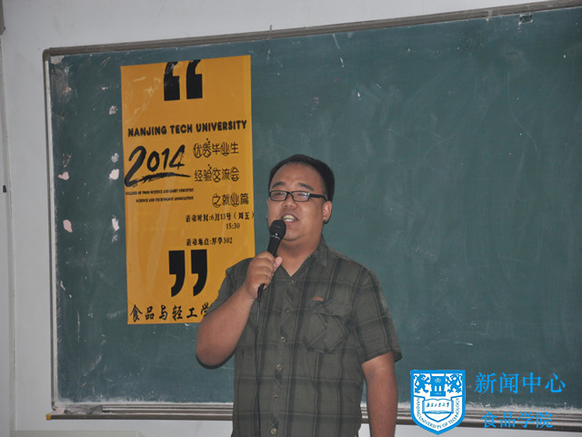 20140613 优秀毕业生经验交流会之就业篇——优秀毕业生梁彬斌介绍了有关公务员考试的相关经验,诙谐幽默的表达调动了整个会场的气氛(食品院)