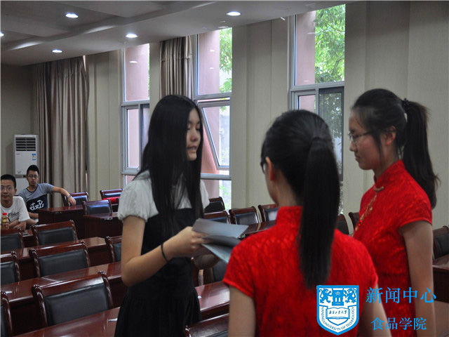 20140612 美高梅mgm1888公司官网励志学社社长秦琲琛仔细地为礼仪讲解仪式流程(食品院)