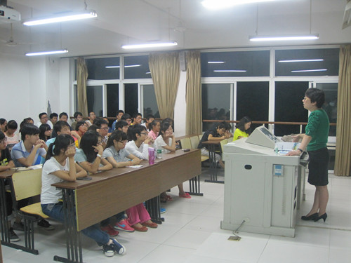 会议开始,每位同学逐个上台进行了自我介绍,在众多新同学面前,同学们勇敢的说出自己的兴趣爱好,自己对大学新生活的展望以及对未来的期待。而三位老师则分别从学习、生活、专业三个方面进行讲解与阐述。学习方面,江凌老师特别指出在大学校园学习,最重要的是态度。大学主要是靠自己,没人督促,自己得自觉,不懂得要及时向同学老师询问。而迟波老师则在生活方面提出很多建议,他指出,大学生活,首屈一指的是人际交往,要多与学长学姐交流,认识更多的人,拓展自己的人脉,那样的话,办起事来会方便很多。同学们认真的听完前两位老师的指导后,又迎来陈晓晔副书记对专业的介绍。陈老师从各个方面对食品和轻化进行全方位的解析,不但指出专业的发展前景,而且对大家较为关心的就业问题进行了解答,让大家更加放心的加入到今后的学习生活中。