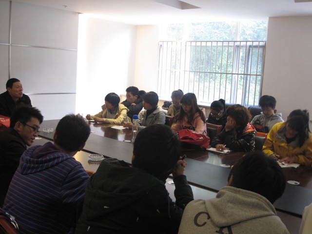 最后老师向班委们提出了以下几点要求:要积极的争取入党,严格的要求自己;提高自身的就业竞争力,获得国家级的证书;加强自己工作能力的锻炼。老师以自身的经验与同学们进行了探讨,建议同学们积极参加学院班级的活动,提高自己的人交往能力。座谈会结束后,12级新生纷纷感谢潘老师的指导与关心。