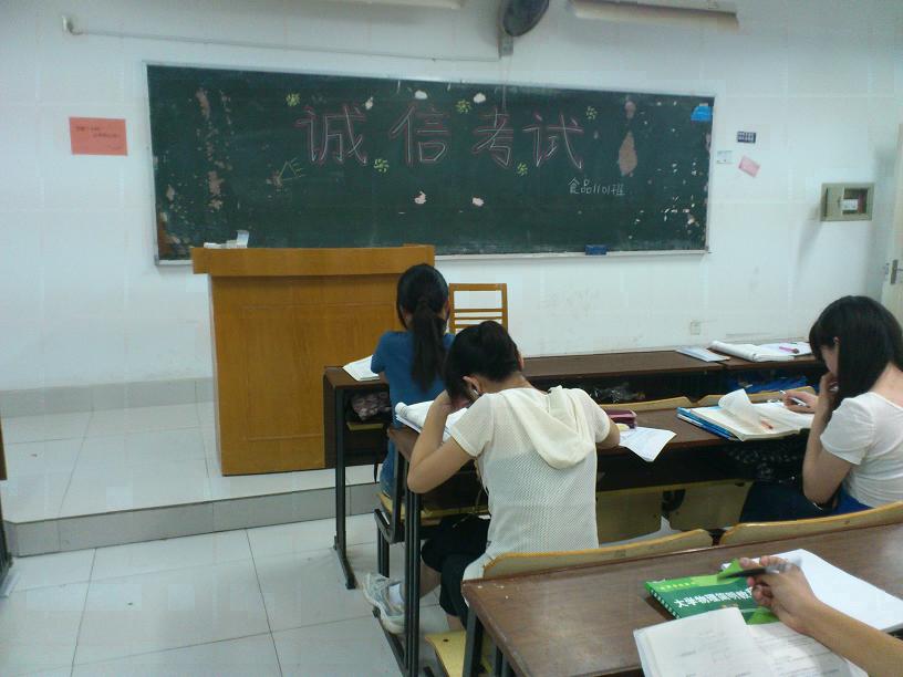 2012年6月10日晚七时,夜幕下的自习教室悄然无声,然而,在食品1101班同学们的编排下,书页为幕布,水笔作舞者,清风相送,一部部引人发奋的舞台剧正在上演。在此备战之际,食品1101班的同学们为了提高自身修养,建设优良的学风、班风,开展了“诚信考试”主题班会。