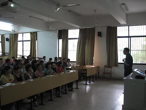 报告于早上9点举行,熊晓辉教授首先向同学们提问“什么是大学”?同学们围绕这个提问各抒己见,有人说“大学是追求学术知识的地方”,也有人说“大学是提升能力的舞台”等等。随后,熊教授就联系这个问题简单地阐述了自己的想法,他认为进入大学是要在大学里学习大学精神。人要多思考,所谓我思故我在就是要同学们做一个有思想的人。同时,他认为领导能力也是非常重要的,要利用短短的大学四年不断地提升自己的综合能力,使自己成为一个社会型人才,能够在人才济济的社会中脱颖而出。许多人都存在“考上大学就轻松地的”的想法,这个想法是不正确的,进入大学究竟该怎么做?又应该培养自己的哪些方面?这些都是需要同学们思考的。在报告中,熊教授建议同学们可以从科学研究、社会服务中不断地锻炼自己,培养实验动手能力、协调工作能力等多方面。最后,他还以牛津、剑桥等多所知名院校中的杰出人才为例,强调在大学里养成自主学习能力的重要性。