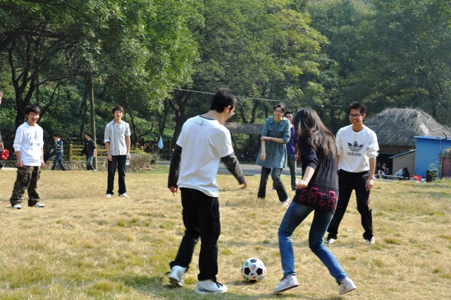 上午,我们伴着清晨温暖的阳光步行至江浦客运站,然后集体坐车到达老山森林公园。到了那里,大家都很兴奋,一个个活蹦乱跳,互相嬉戏耍闹。我们先是到了烧烤的地方,见离午饭时间还早,几个同学拿出带来的足球,风风火火踢了起来。有些活泼的女生看的眼馋,也加入了其中,虽然技术不过关,但有机会踢到球,也是一件很开心的事情。还有一些文静的同学躺在草坪上,感受着大自然的亲切,和好朋友谈着最近的生活点滴,或是看着大家耍闹快乐的笑着。