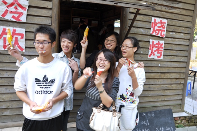 中午,烧烤开始,同学们纷纷动起手来,这个烤个鸡翅,那个烤个牛排,吃的不亦乐乎,忙的热火朝天。开始可能技术不好,烤的东西不是这里焦了,就是那里还没熟。后来越烤越好,水平直线上升,大家就更有激情了,一个个吃的鼻尖冒汗,小肚撑撑,却仍不肯罢手。伙伴们也懂得和大家分享自己的“成果”,都把自己认为烤的最好的给其他伙伴品尝,就这样畅谈着,分享着,快乐着…