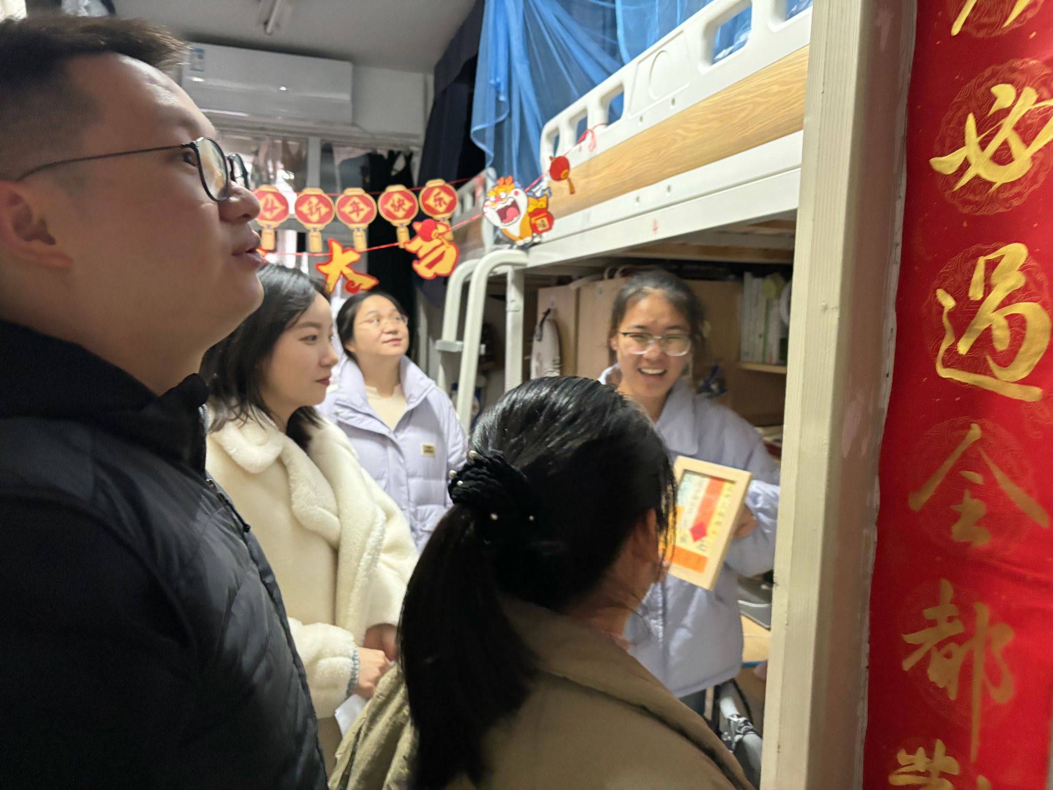 在走访过程中,老师们与同学们亲切交谈互动,详细了解大家入学后环境适应情况、专业学习与实验参与情况、发展个人爱好特长情况等,重点关注经济困难学生和心理薄弱学生的现实困难,有针对性地给予帮助。老师们特别强调了宿舍安全与卫生的重要性,就宿舍管理规定、人身财产安全、防电信诈骗等做了提醒,还称赞了同学们宿舍文化月的建设成效。正值期末考试周,老师们鼓励大家认真积极备考、优化时间安排、合理调整作息,适当运动,保持身心健康,严格遵守考场纪律,力争取得佳绩。