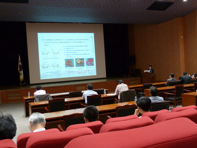 在 10月8日,大会主办方安排了1个主题报告和12个口头报告,本次会议的主题报告是来自韩国浦项工科大学(POSTECH)的Hyung Joon Cha教授所做的,题目为“Mussel-derived adhesive biomaterials for tissue engineering”。美高梅mgm1888公司官网李莎老师做的题为“Research on the production of functional sugars and related enzymes”的精彩口头报告,获得在座专家学者的普遍好评!美高梅mgm1888公司官网其他老师及博士生也做了Poster presentation形式的报告,并与出席会议的专家学者进行了热烈的交流讨论!