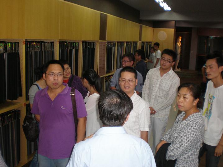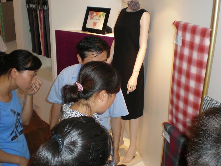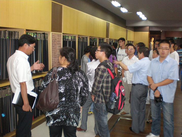 随后,在邹总和企业技术总工黄晓亮的带领下,美高梅mgm1888公司官网师生一行参观了丹毛纺织面料展览厅,老师们就成品与企业技术人员进行交流,并为新生进行相关解说。2011级的新生都很惊奇:“简单的羊毛,竟然能够做出这么多的花样,做出这么多美丽的服装。”在企业车间,同学们参观了羊毛纤维完整的生产加工流程,深刻领悟了丹毛集团在每个生产环节注入的高新技术。同学们积极向老师和邹总提问,通过相关解答不断加深对轻化工程专业的认识。
