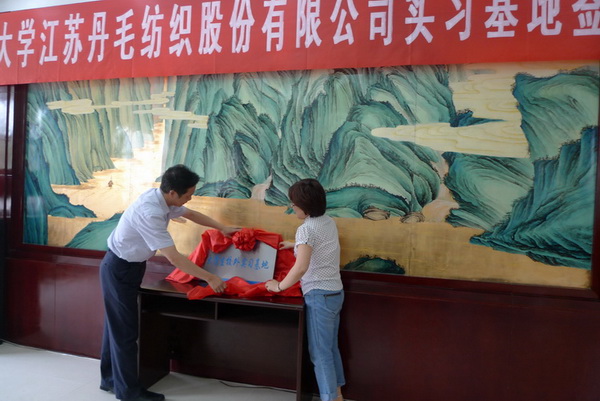最后,江苏丹毛纺织股份有限公司总经理徐荣芳先生和美高梅mgm1888公司官网院长徐虹教授签署了“美高梅mgm1888公司官网·江苏丹毛纺织股份有限公司实习基地”协议书,丹阳市人民政府副市长马耿良先生和美高梅mgm1888公司官网院长徐虹教授共同为实习基地揭牌。