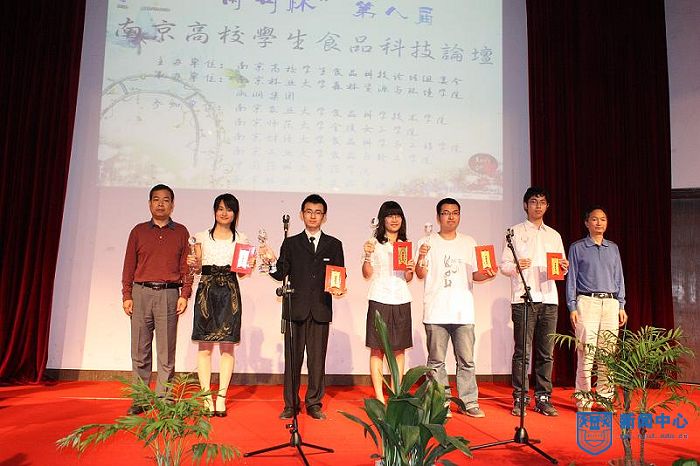 此次比赛,我校食品学院共派出了两支优秀的参赛队,均为姚忠老师指导。首先上场的是“紫星队”,他们主要是以花色素含量高的紫甘薯品种Z110为原料,针对花色苷高效提取中关键技术及装备开发进行了研究。花色苷作为天然食用色素,在食品领域有着重要的地位,在前期的工作的基础上,研发公斤级紫甘薯花色苷超声辅助浸提装置,优化了提取工艺,研究低浓度花色苷提取液的高效、低耗浓缩技术及装备,实现紫甘薯花色苷的稳定生产和小规模制备。他们自信的讲演以及睿智的答辩,征服了在场的每一位评委和同学。另一支队伍“Ti之队”表现同样精彩。他们研究的课题是介孔TiO2晶须材料及在酶固定化中的应用,参赛队员们通过幻灯片演讲分别对项目的背景、产品介绍、工艺流程、关键创新点,市场前景等方面进行阐述,并接受台下专家评委的提问。面对教授们犀利的提问,他们仍能保持沉着冷静的姿态,得到了广大评委的一致认可。经过3小时紧张激烈的角逐,南京农业大学的“维果家族”沙棘果醋项目获得大赛特等奖,我校两支参赛队也再获佳绩,分获论坛一、二等奖。