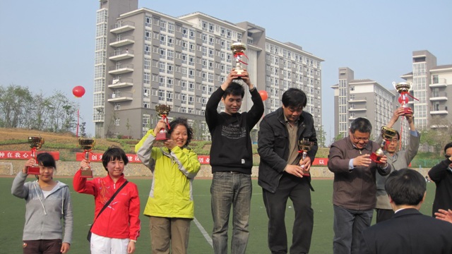 在运动会上,学院的老师们一改平时的形象,穿上运动服,走进田径场,与其他学院的老师们一起为在场所有人奉献了一场场精彩的比赛,无论是跑道上奋力奔跑的身影,还是起跳线后用尽全力的一跃,都让同学们看到了老师们的另一面。而他们对待比赛全力以赴的精神更是为同学们做出表率。待人亲切的郑春玲老师平时深受同学们的喜爱,因此在得知郑老师要参加青年女教师铅球比赛时,同学们早早便来到比赛场地为她加油。比赛时,郑老师的脸上始终挂着自信的微笑,一次次的投掷,郑老师逐步确立了优势,荣获铅球女子青年组冠军。在中年女教师投篮比赛中,倪芳老师格外认真,瞄准,投篮,每一步都做得非常到位,最终以投中九球的好成绩锁定胜局。另外,学院的其他老师也取得了不俗的成绩:夏栋老师在中年男教师铅球比赛中取得第二名,孙戒老师在青年男教师铅球比赛中名列第七,缪冶炼、张正宇两位老师也在教工男子投篮比赛中获得第四名,而在教职工集体传球项目中,学院老师更是发扬团结协作的精神,喜获第四名。由于老师们在各项比赛中的突出表现,学院教职工总成绩在全校取得了第六名的好成绩。在老师们的影响下,同学们也以积极的态度投入到各项比赛中,奋力拼搏,挑战自己,超越自己,感受竞技的激情,体验运动的快乐。学院代表队在女子4×100米比赛中,充分表现了队友间的默契合作,以优异的成绩闯入决赛;参加趣味项目“袋鼠跳”的陆胜男、李雪琪也发挥良好,分别取得了第三名和第七名。