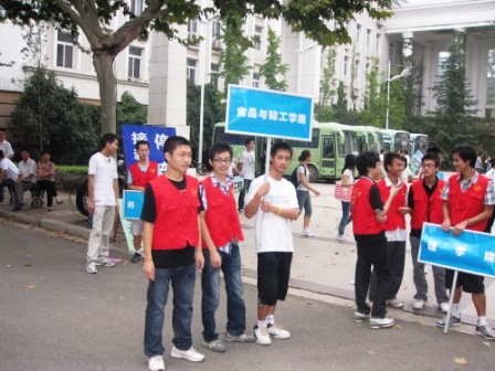 2010年9月10日,在学院领导的正确部署及全体师生的通力配合下,食品学院顺利迎来了120余名2010届新生,按照要求完成了迎新的各项工作。当天现场气氛活跃,志愿者们个个充满活力与热情,来回穿梭在人群中。志愿者们忙碌的身影让众多家长以及领导、老师们备感欣慰和高兴。