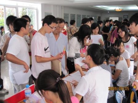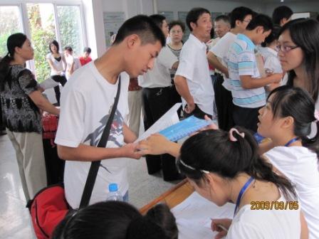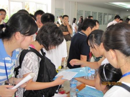 学院报到点的工作秩序井然,工作人员分工合理,查看体检情况、核对身份信息、发放宿舍钥匙、介绍入学安排等等,整个报到流程清晰明了,全部报到程序快速高效。9月5日下午5点,学院2009级的全部新生均已报到,学院迎新工作划上了圆满的句号。