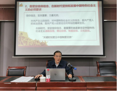 陈建华老师以“学党史、悟思想、办实事、开新局,以优异成绩迎接建党100周年”为主题,围绕充分认识开展党史学习教育的重大意义,切实增强学党史受教育的行动自觉;深学深悟习近平总书记重要讲话精神,以此为遵循,全身心投入学习教育之中;学好基本著作,用好参考资料,全面了解党的百年奋斗历程和伟大历史成就;准确把握党史学习教育的重点,学懂弄通做实习近平新时代中国特色社会主义思想;坚持用唯物史观认识和把握历史,坚持把学习教育同解决实际问题结合起来等五个方面进行了深入阐释。报告内容主题鲜明、视野开阔,引经据典、深入浅出,对学院开展好党史学习教育具有很强的指导意义。