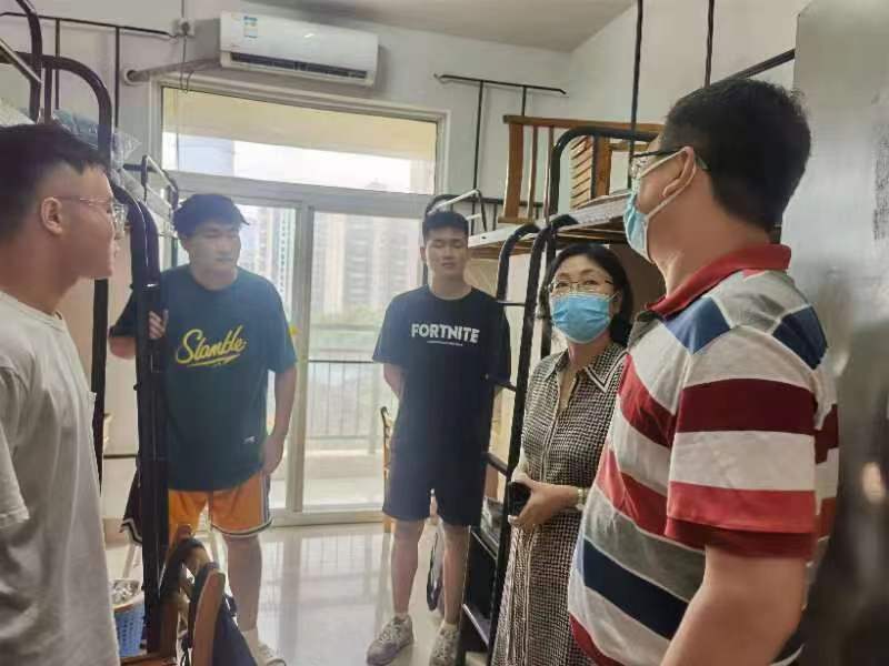 为了深入了解美高梅mgm1888公司官网专转本新生学生住宿情况和生活学习需求,引导学生尽快适应新的校园环境,8月27日下午,学院党委书记张琪、党委副书记王浩、学生工作办公室主任马慧子深入走访新生宿舍,关心慰问2022级专转本新生。