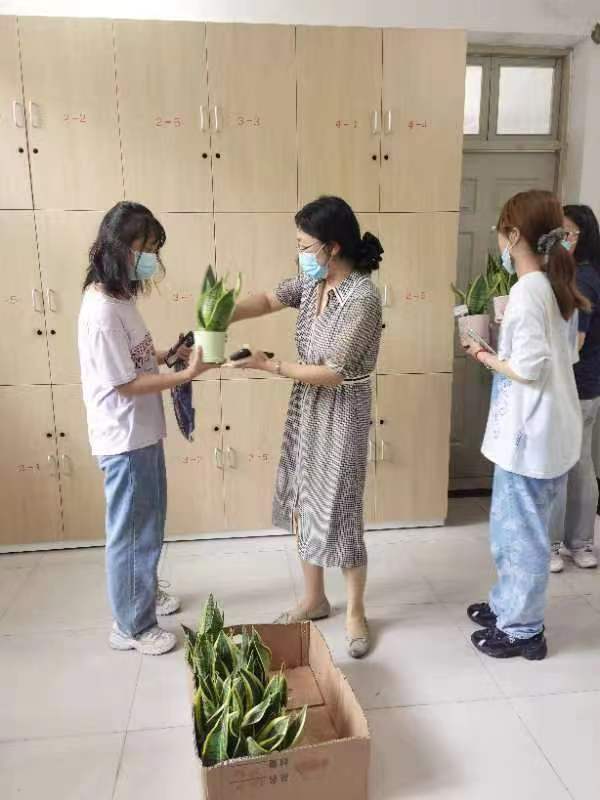 学院领导在宿舍与同学们亲切交谈,询问了大家住宿环境、饮食习惯、家乡户籍、毕业院校、专业背景等,对于大家关心的毕业条件、学习要求也做了详细解读,并嘱咐大家要注意校园安全、用电安全和网络诈骗,希望大家能够在学校、学院度过收获满满的两年。对大家的到来表示热烈欢迎,学院领导为每一位新生赠送了写有“食品2003班学业顺利“祝福标签的绿色盆栽,希望同学们能在“新学年、新起点”,走向“新征程”,迎接“新挑战”,燃起“新希望”。