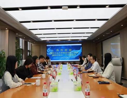 南京江北新区生物医药公共服务平台有限公司总经理、我校杰出校友阚苏立博士围绕企业概况、平台支撑、创新突破和发展规划进行了详细介绍。胡永红院长介绍了学院的学科设置、科研概况、专业特点和人才培养情况。双方围绕项目协同、平台共享、教师能力提升、实践教学、就业实习等进行了深入的探讨和交流,一致同意加强产学研融合的内涵建设。