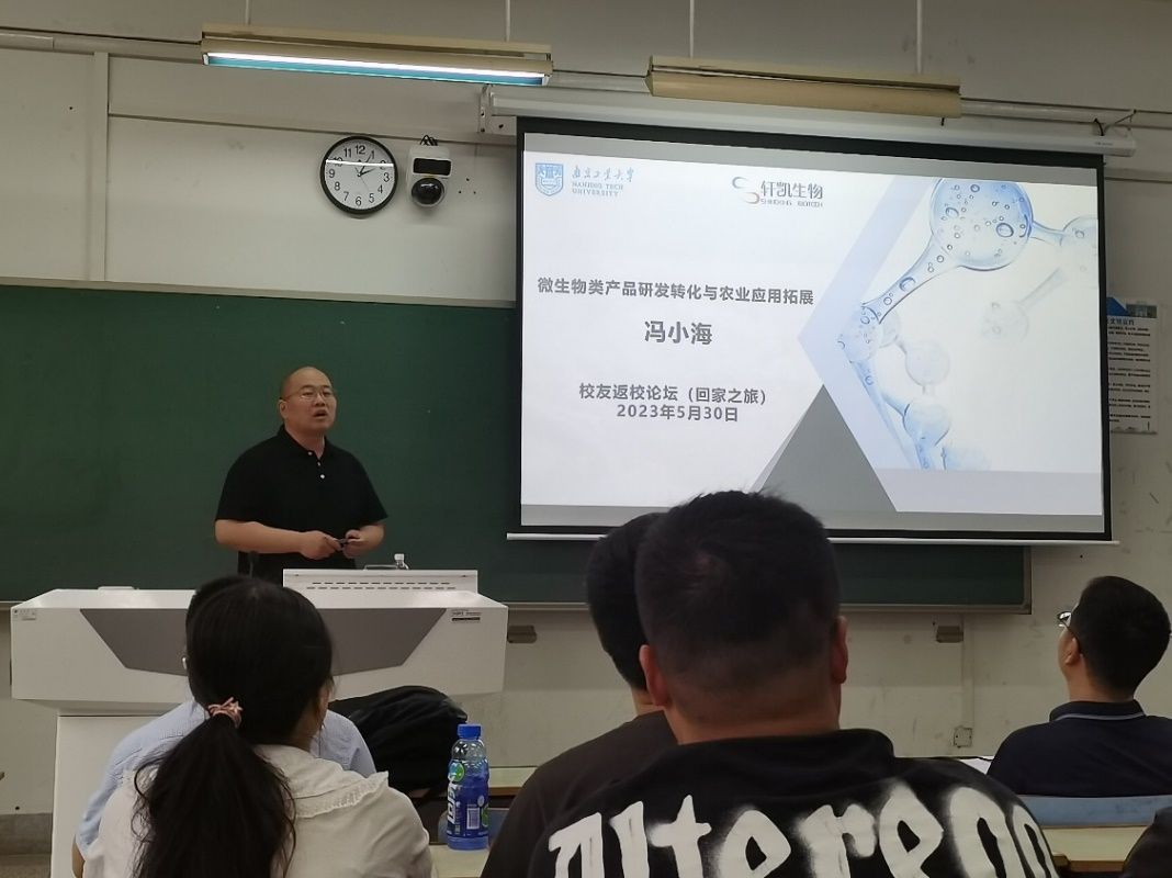 5月30日下午,学院在笃学A楼304教室召开优秀校友返校论坛。诚邀两位优秀校友南京轩凯生物科技股份有限公司冯小海总经理和上海理工大学李万方教授返校交流。会议由院长助理王国伟老师主持,学院教师、本科生和研究生代表100余人参加了此次活动。
