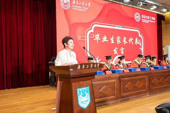 优秀毕业生代表轻化2001沈黄晨、毕业生家长代表食安2001夏子缘母亲刘洋女士分别发言,感谢学院和老师的四年来的关心、指导和培养。教师代表江凌教授以“保持个人修养、注重团队合作、厚植家国情怀”来勉励毕业生牢记使命与初心,为中国梦努力拼搏。胡永红院长以“青春正扬帆 奋斗共筑梦”寄语全体学生,希望全体学生做赤诚奉献的“追梦者”、砥砺奋进的“开拓者”、脚踏实地的“奋斗者”,在以中国式现代化全面推进中华民族伟大复兴的历史进程中绽放青春的绚丽之花。