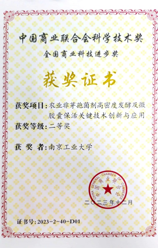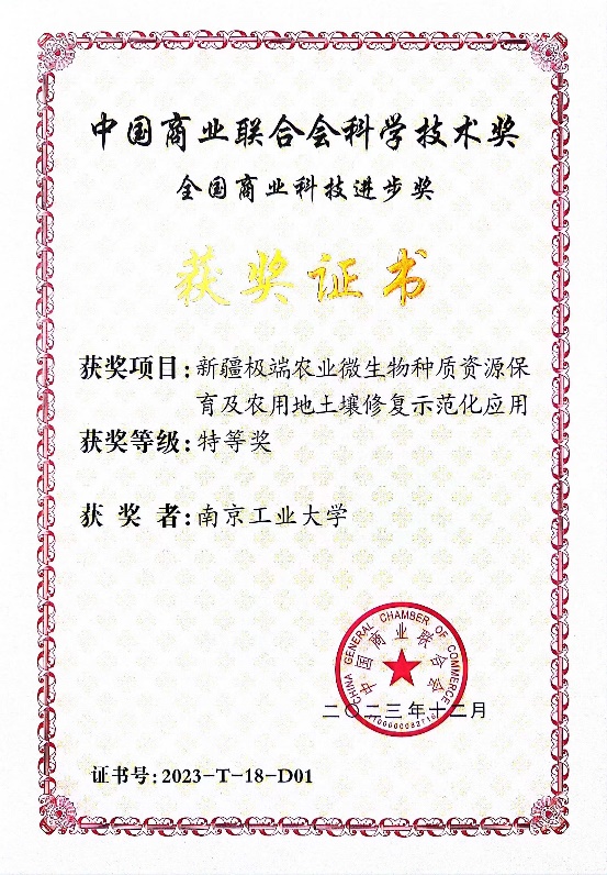 美高梅mgm1888公司官网江凌教授主持的“新疆极端农业微生物种质资源保育及农用地土壤修复示范化应用”项目荣获全国商业科技进步奖特等奖(证书号:2023-T-18-D01)、王瑞教授主持的“农业非芽孢菌剂高密度发酵及微胶囊保活关键技术创新与应用”项目荣获全国商业科技进步奖二等奖(证书号:2023-2-40-D01)。以上成果是美高梅mgm1888公司官网生物制造技术在服务大农业领域的关键理论创新和技术突破,取得了良好的经济效益和社会效益,为助推生物技术在农业土壤修复和粮食增产领域的落地转化作出了积极贡献。