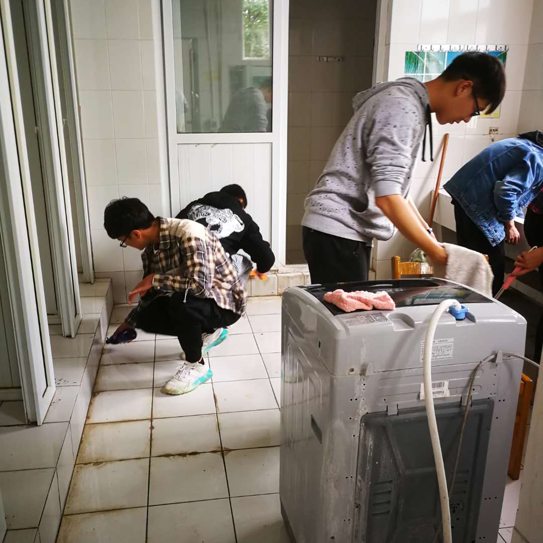 学院为新生采购了一批清扫需要的拖把、刷子、洁厕灵等物品,引导同学们认识到宿舍卫生环境的重要性。同学们提前规划、讨论分工,先将各自宿舍内的床铺、书桌、地面、阳台、窗户都进行了细致的打扫,通风晾干过程中对公共区域的卫生间的地面、墙面进行擦洗,并将洗衣机底盘、拖把池、墙角等平时注意不到的死角都一一清理干净。辅导员和助理班主任对宿舍卫生清理情况进行了仔细的检查,并协助同学们进行了整改。